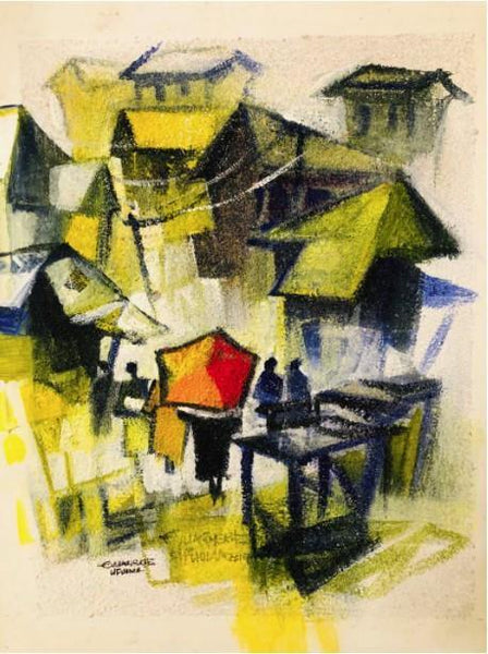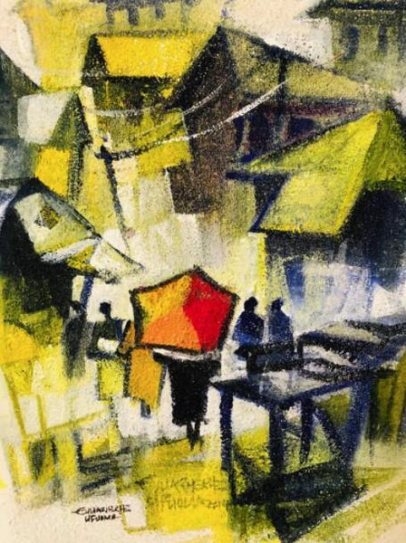 Original African Painting On Canvas Board. Titled Urban Life XIV. Urban Life 14