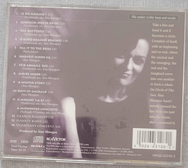 Enchanting sounds of Aine Minogue with Circle of the Sun. This is a CD featuring Celtic music. Released in 1998 by RCA Victor.