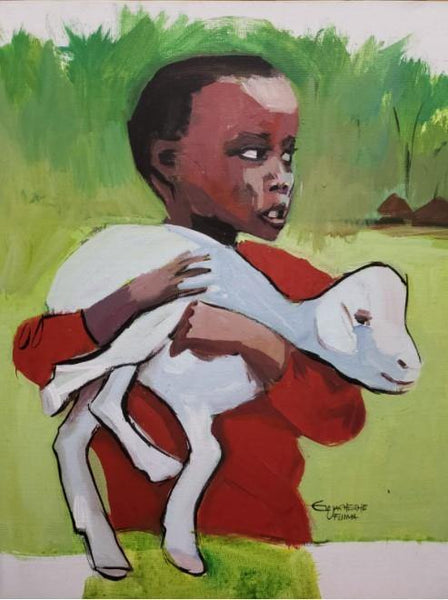 Original African Painting On Canvas Board. Titled African Farm Boy I. African Farm Boy 1.