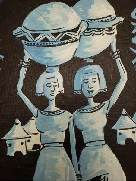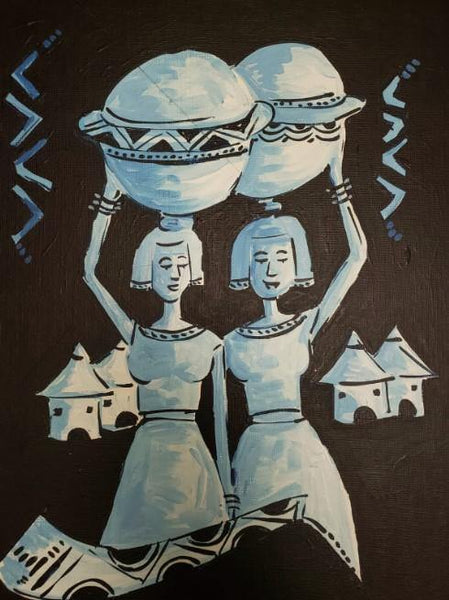 Original African Painting On Canvas Board. Milk Maid 7. Unsigned Painting.